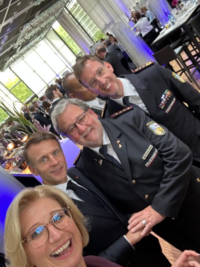 Nach seiner sehr beeindruckenden Rede über Europa wurde er natürlich auch von den beiden Vertretern der saarländischen Feuerwehren, dem Präsident des Landesfeuerwehrverbandes Manfred, Rippel und Landesbrandinspekteur Timo Meyer, herzlich begrüßt.